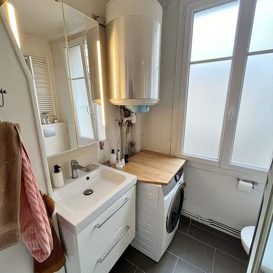 Rue de Paris, à proximité des commerces et du Métro ligne 14 porte de Clichy, appartement en très bon état loué entièrement meublé et équipé, composé d'une entrée, séjour, cuisine ouverte sur salle à manger, dégagement, chambre avec dressing, salle d'eau et wc. Appartement traversant exposé Sud/Ouest peu de vis à vis. Double vitrage. Chauffage et production d'eau chaude électrique individuel. Libre le 1er février 2026. Assurance de loyer Impayé Honoraires de 660 € TTC à la charge du locataire comprenant 132 € TTC pour l'état des lieux. Loyer...