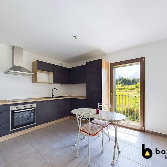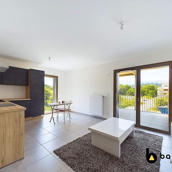 Baobab vous propose en exclusivité à la location cet appartement T2 meublé de 48,20m² avec balcon, cave et garage situé à Cognin, Allée des Libellules, au tarif de 895€/mois charges de copropriété incluses. Appartement au premier étage avec ascenseur, disponible à partir du 7 janvier 2026. Descriptif : Hall d’entrée avec placard, séjour de 26,2m² ouvrant sur un balcon (8,6m²) avec cuisine équipée et aménagée (four, plaque de cuisson, hotte, réfrigérateur/congélateur), une chambre avec placard (11,20m²) attenante à une salle d’eau (5,7m²) équ...