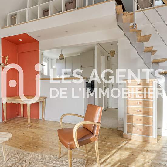 Dans un quartier calme et résidentiel, proche du centre-ville, des commerces et du cinéma, duplex meublé 2/3 pièces au 3ème étage d'un petit immeuble ancien. Entièrement rénové récemment, cet appartement très lumineux, sans vis-à-vis, offre une vue dégagée sur La Défense. Sa surface de 60 m² au sol (pour environ 50 m² de superficie habitable) comprend : séjour parqueté avec cuisine ouverte équipée par lequel on accède à une grande mezzanine de 20 m² (bureau / télétravail / couchage d'appoint), chambre avec rangements,, salle d'eau, WC séparé...