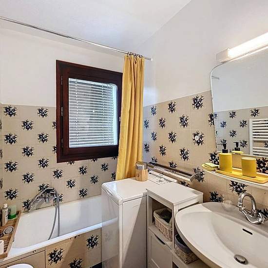 Appartement 2 pièces, il se compose d’une entrée avec placard, un wc avec lave main, une chambre avec un lit de 140 et placard, une salle de bain avec lave-linge et sèche-serviette, une cuisine équipée (plaque vitro 4 feux, lave-vaisselle, frigo-freezer, four, bouilloire, grille-pain, Nespresso, cafetière, appareille à raclette, gril, gaufrier), un séjour en RDJ avec un canapé lit (140) et 2 lits rabattables de 90, une grande terrasse avec jardin exposée Est. Annexes : Un casier à skis. - A régler lors de votre arrivée : Taxe de séjour et ca...