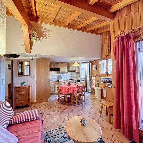 Bel appartement au 1er étage avec très belle vue Mont-Blanc, situé dans une petite copropriété à proximité du ski bus et à 900 mètres du village de Combloux. Il se compose d'une entrée, placard, une salle de bain, un wc indépendant, une chambre avec un lit de deux personnes (140x200). Une pièce de vie avec cuisine ouverte tout équipée (four, frigo, lave-vaisselle, lave-linge, plaque vitrocéramique) , coin repas, coin salon avec un lit gigogne (2x90) donnant accès sur un balcon/terrasse. Un garage et un casier à skis. - A régler lors de votre...