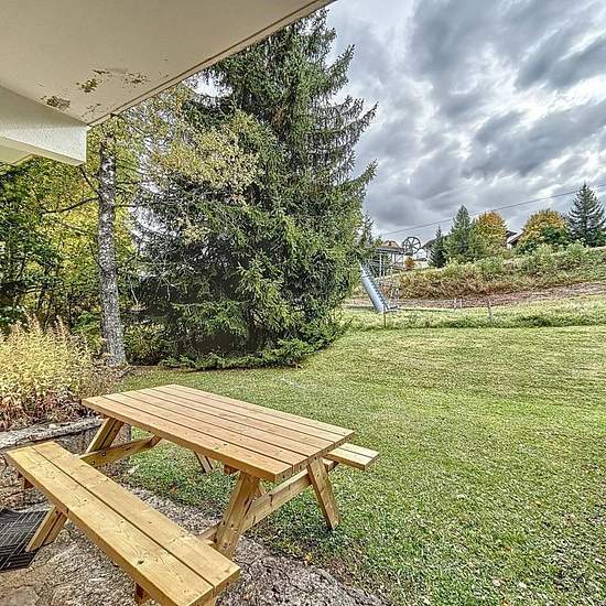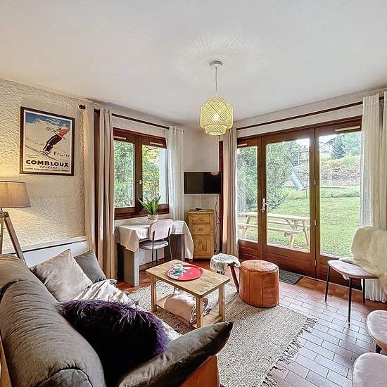 Appartement 2 pièces, il se compose d’une entrée avec placard, un wc avec lave main, une chambre avec un lit de 140 et placard, une salle de bain avec lave-linge et sèche-serviette, une cuisine équipée (plaque vitro 4 feux, lave-vaisselle, frigo-freezer, four, bouilloire, grille-pain, Nespresso, cafetière, appareille à raclette, gril, gaufrier), un séjour en RDJ avec un canapé lit (140) et 2 lits rabattables de 90, une grande terrasse avec jardin exposée Est. Annexes : Un casier à skis. - A régler lors de votre arrivée : Taxe de séjour et ca...