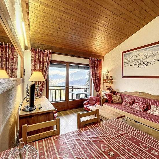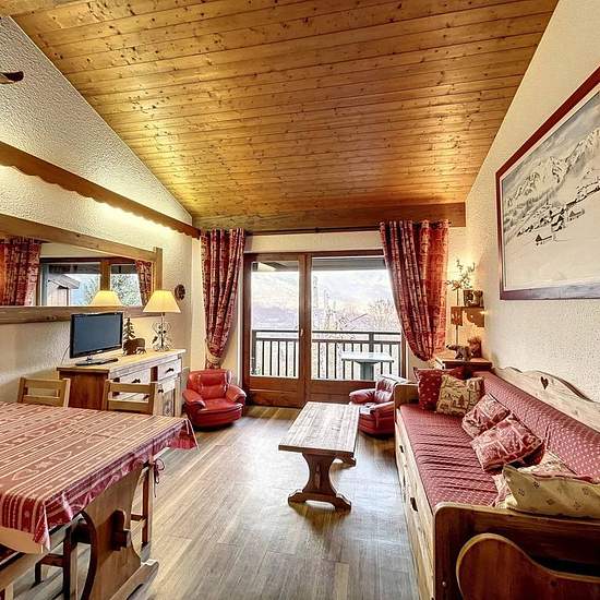 Situé au centre de Combloux dans une copropriété de standing avec une très belle vue Mont Blanc exposition Est. Studio mezzanine de 39m². Composé d’une entrée, un wc indépendant, une salle de douche, une pièce de vie avec un lit 1 personne et 1 lit tiroir, un coin repas avec une cuisine équipée (plaques électriques, micro ondes, réfrigérateur, four, lave-vaisselle, cafetière expresso et classique, grille pain, bouilloire), une grande mezzanine avec un lit en 160 et un lit de 90. Un lit bébé parapluie. Annexes : place de parking en sous sol, ...