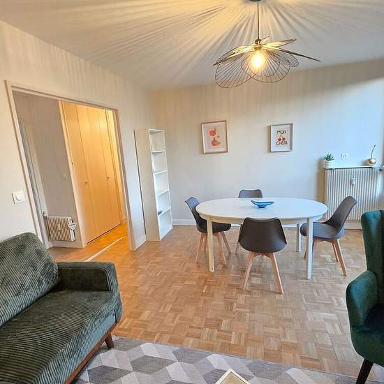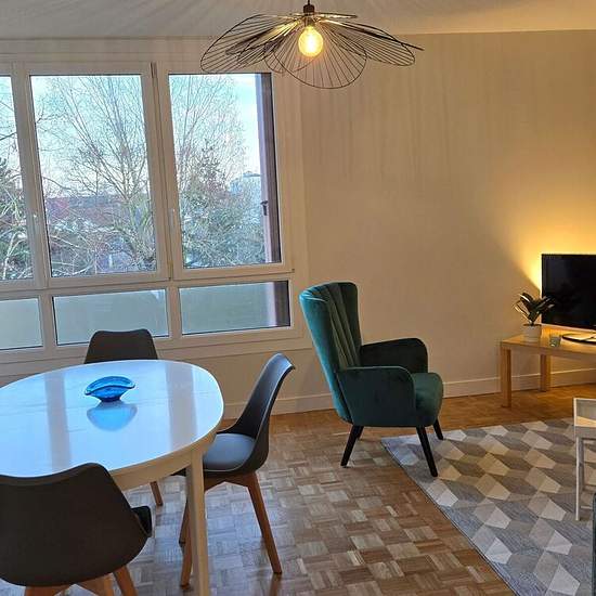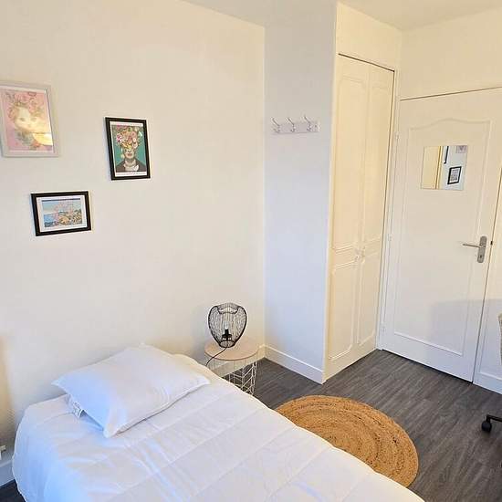 Three rooms for rent in a shared flat. COMPIÈGNE – a 15-minute walk from UTC Furnished room for rent in a shared apartment, located on the 3rd floor of a quiet building without an elevator, in a fully renovated and furnished apartment. The common areas include an entryway, a fitted and fully equipped kitchen (hood, cooktop, refrigerator, microwave, dishwasher), a hallway with closets, a living room with a TV, and a shower room. The room is furnished with a bed, a desk, and a closet. Three rooms are available, so it is possible to rent as ...