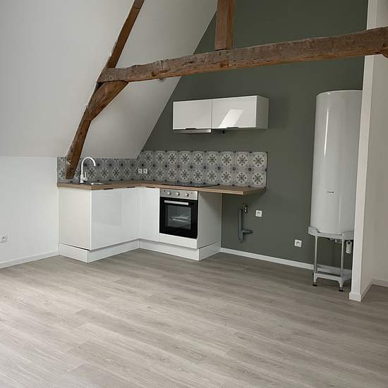 Cet appartement T2 situé au 2ème étage sans ascenseur, sur la place Rombault, se compose : D'une pièce de vie avec cuisine équipée (four, plaques, hotte), salle de douches avec WC, une chambre. Double vitrage, chauffage électrique individuel. Loyer : 540 EUR Charges : 40 EUR (comprenant une provision pour l'eau froide et la taxe d'ordures ménagères) Honoraires : 405 EUR + 100 EUR d'état des lieux par huissier. Appartement entièrement refait à neuf, avec goût. Libre le 02/01/26. Garantie Visale exigée. Lemercier-immobilier.com