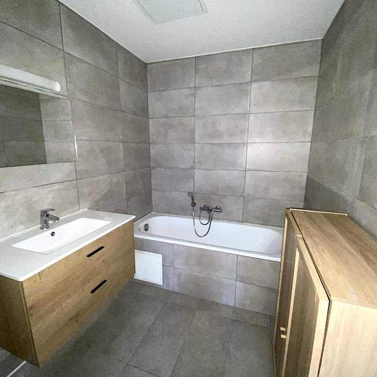 Proche de la gare, au RDC d'un petit immeuble, appartement F2 comprenant un séjour avec coin cuisine AMENAGEE et EQUIPEE (plaque vitro,four), une chambre, une salle de bain, un wc. - Un emplacement de PARKING - Chauffage par convecteurs électriques