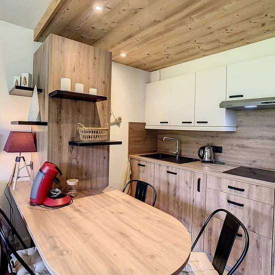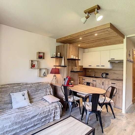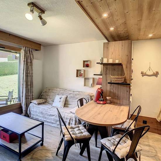 Situé dans une petite copropriété de standing, dans un secteur très calme et champêtre à proximité de Megève et Combloux, joli appartement rénové au 1er étage/rez de jardin, il se compose d'une entrée avec rangements, une chambre avec un lit de deux personnes 160X200 et un lit en hauteur de 90X200 placards, une salle de douche, un toilette indépendant, une pièce de vie avec cuisine ouverte toute équipée, coin repas, coin salon avec un convertible 2x1 personne, accès sur une terrasse/jardin Est Sud, un poêle à bois uniquement décoratif, Lave ...