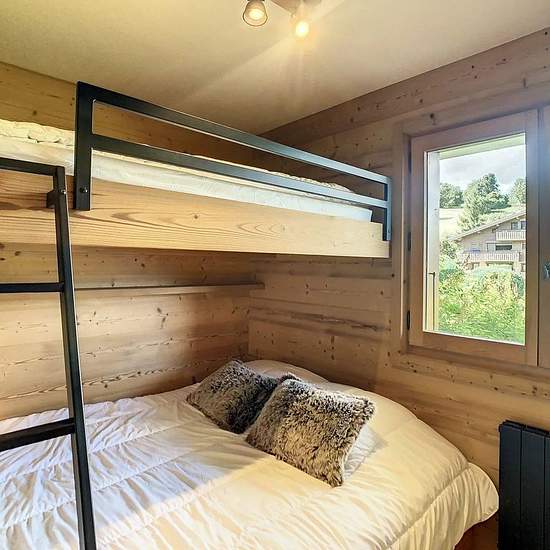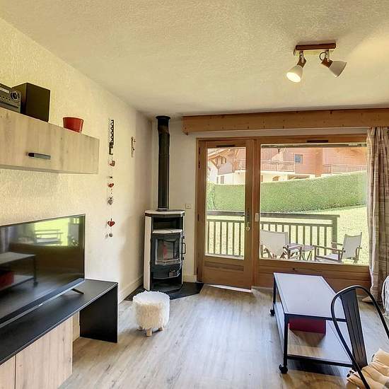 Situé dans une petite copropriété de standing, dans un secteur très calme et champêtre à proximité de Megève et Combloux, joli appartement rénové au 1er étage/rez de jardin, il se compose d'une entrée avec rangements, une chambre avec un lit de deux personnes 160X200 et un lit en hauteur de 90X200 placards, une salle de douche, un toilette indépendant, une pièce de vie avec cuisine ouverte toute équipée, coin repas, coin salon avec un convertible 2x1 personne, accès sur une terrasse/jardin Est Sud, un poêle à bois uniquement décoratif, Lave ...