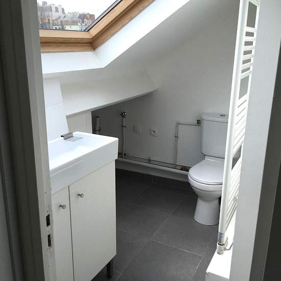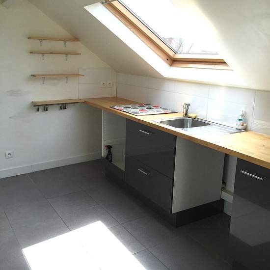 DEUIL LA BARRE, in the immediate vicinity of the LA BARRE ORMESSON train station, a few steps from shops, on the 3rd and top floor of a small condominium, charming F1 (studio) of 30 m² comprising: entrance, open kitchen onto the living area, a 7 m² office that can serve as a spare bedroom, shower room with WC. 1 cellar. Available immediately.