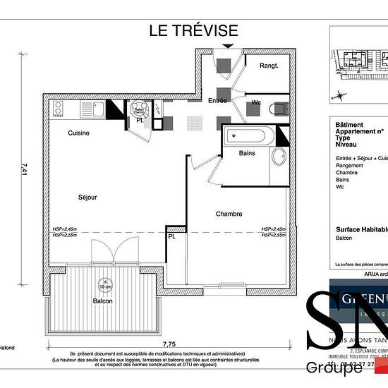 QUIETIS GESTION // RESIDENCE LE TREVISE RESIDENCE NEUVE EN LIVRAISON FIN FEVRIER 2026 - DEFISCALISATION PINEL Contactez notre agent commercial Madame DELAUNAY Caroline au 06x20x13x49x78 ou par mail : EMAIL pour visiter cet appartement T2 de 45.16 m² au 1er étage, avec entrée avec rangement, séjour coin cuisine équipée avec meubles hauts et bas, plaque de cuisson, hotte aspirante, frigo table top, 1 chambre avec placard, 1 salle de bains avec machine à laver le linge, wc indépendant. Balcon de 6.33 m². 2 Parkings extérieurs Honoraires de 592,...