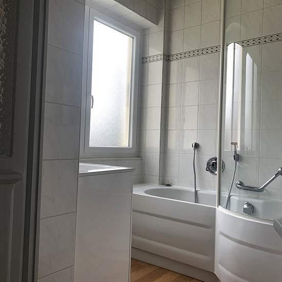ECKBOLSHEIM Au coeur du village, tout proche de la Nature, quartier résidentiel et proche de la piste cyclable. Logement avec de beaux volumes et une belle hauteur sous plafond. Appartement 2 pièces d'une surface de 64,23 m2 situé au 1er étage sans ascenseur. Il se compose d'une entrée, d'un wc séparé, d'une chambre de 17,28m2, d'un salon/salle à manger de 20,29m2, d'une salle de bain (baignoire, meuble rangement, lavabo et miroir), d'une cuisine avec ilôt central (meubles évier, rangements) et un cellier. Logement fibré. Chauffage individue...