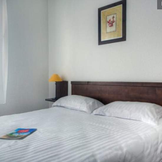À proximité du golf d'Evian et du centre-ville, notre hôtel-résidence offre une vue panoramique sur le lac Léman. A 5 minutes à pied d'un supermarché et d'une boulangerie ouverte 7j/7, la situation de la résidence est idéale. À seulement 20 minutes en voiture des stations de ski de Bernex et de Thollon-les-Mémises, mais également à 1,5km de la plage et du centre de sports nautiques, cet établissement est un pied-à-terre idéal et très abordable pour tous types de séjours. Composé d'une grande pièce à vivre avec canapé-lit (140*190) et cuisine...