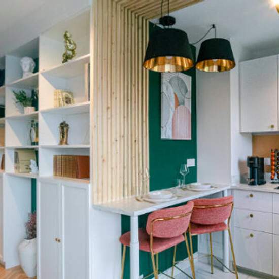 Studio /deux pièces meublé situé dans une résidence calme et sécurisée, avec espaces verts et parking. Logement lumineux et bien agencé, idéal pour une personne seule ou un couple. Vidéo disponible du logement : voir le site ci-dessus. Équipements : - Coin nuit séparé par une claustra ouverte avec matelas Emma Hybride (lit 140x200cm) - Salon avec canapé, Smart TV 4K, bureau - Cuisine équipée : plaques vitrocéramique, frigo-congélateur, micro-ondes, mini-four, lave-vaisselle, machine Nespresso, bouilloire, ustensiles de cuisine et set de vais...