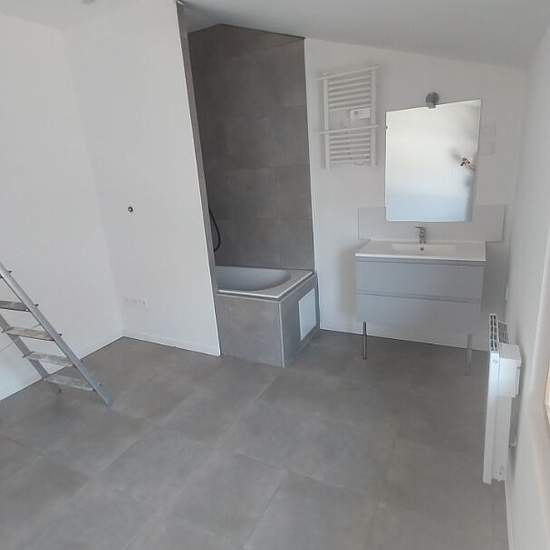 Appartement 2 pièces refait à neuf comprenant : Entrée sur pièce principale avec une cuisine aménagée et équipée (Plaque, four), une chambre avec bain et un wc. Une terrasse et une place de stationnement. Eau froide dans les charges.