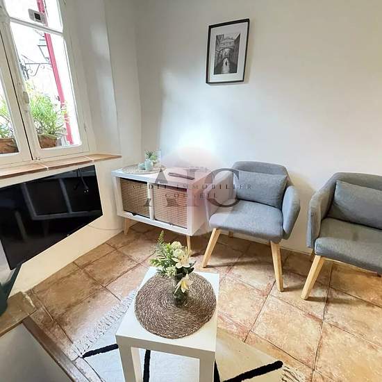 A LOUER Appartement meublé, deux pièces avec demi-niveaux, en cœur de village avec accès piéton par ruelles. Joliment arrangé avec gout, très propre avec la jouissance d'un petit extérieur pour flâner. Distribué d'un séjour avec coin cuisine équipée, toilettes, une chambre avec salle de bains. Libre. A rajouter l'eau et l'électricité.