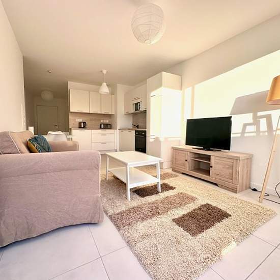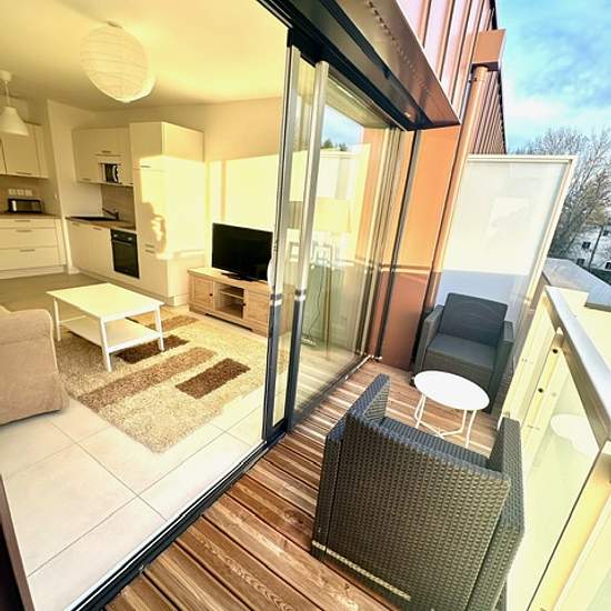 FERNEY VOLTAIRE, dans un immeuble neuf, livré en 2024, situé au dernier étage, magnifique appartement type T2 de 42m2 entièrement meublé et équipé avec matériaux de qualité. Il dispose d'un balcon, et d'un garage double en sous-sol. Appartement disponible immédiatement. Chauffage individuel électrique. MATESA IMMOBILIER, agence immobilière spécialisée Ferney-Voltaire 01210, location appartement Ferney Voltaire 01210 'Les informations sur les risques auxquels ce bien est exposé sont disponibles sur le site Géorisques