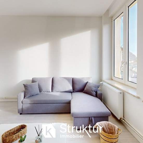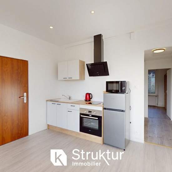 APPARTEMENT F2 RENOVE MEUBLE EN REZ DE CHAUSSEE. APPARTEMENT F2 MEUBLE EN REZ DE CHAUSSEE NILVANGE, exclusivité STRUKTUR IMMOBILIER, F2 meublé à louer de 39m2 avec une terrasse, une cave et un jardinet. Cet appartement se situe au rez de chaussée sur-élevé d'une petite copropriété de 5 appartements, proche de toutes les commoditiés. Description de l'appartement : Une pièce principale de 18m2 avec un coin repas, un salon et cuisine aménagée et entièrement équipée, avec dressing pratique pour un espace bien organisé ainsi qu'un espace laver...