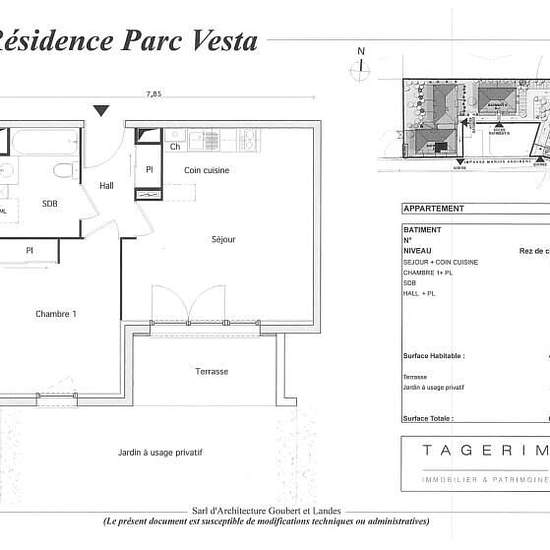 Fonbeauzard (31) - res. Parc Vesta - 2 Impasse Marius Audibert - recent residence, quiet at the end of a cul-de-sac, 200 meters from the Super U of Fonbeauzard, commercial area with Lidl and Bricomarché, 8 minutes from the town hall, middle school and primary school at 800 m, bus line, in a suburban residential area. Pleasant T2 (A03) of 41.52 m² on the ground floor, terrace of 6.34 m² overlooking a garden of approximately 20.34 m², fitted kitchen, fitted bathroom, gas heating, floating laminate flooring in the bedroom, 1 outdoor parking spa...