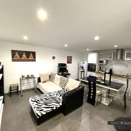 EXCLUSIF COUP DE CŒUR ASSURÉ, FOS SUR MER CENTRE-VILLE, l'agence Margueron Immobilier vous présente à la vente, un appartement type 2 de 48 m² habitable, avec stationnement privatif et un extérieur. Il est composé, d'un séjour/cuisine, une chambre, une salle d'eau et un wc indépendant. Ses atouts : pas de charge (sauf assurance communes 130 e à l'année), une place privée, un extérieur de 12 m², buanderie, dressing. Pour plus de renseignements, contactez Sébastien MASSOT au . Honoraires charge vendeur. Honoraires de 350 € TTC à la charge du l...