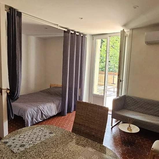 Large studio + 32 m² private terrace - Large 30 m² studio overlooking Cours Forbin with a large south-facing 32 m² private terrace. The surroundings are very pleasant. For rent, fully furnished, very well equipped and air-conditioned. Located on the first floor, this apartment consists of a living area with a fully furnished and equipped kitchen area, a sleeping area with a double bed, a sitting area and a shower room with WC. Available immediately. Rent: 714 euros + 30 euros in charges including cold water. In very good condition. Available...