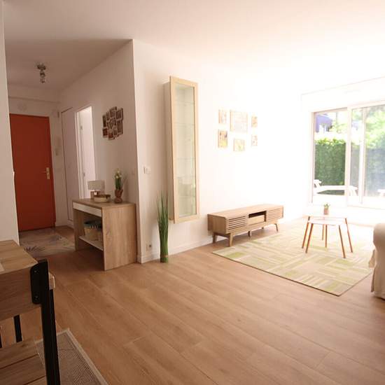 FURNISHED 2-room apartment on the ground floor, 50 m² of living space with a garden of about 70 m². Entrance with closet, living room, open-plan kitchen, bedroom with closet, bathroom and separate toilet. Cellar/laundry room, outdoor parking space and direct access to the garage from the apartment. Underfloor heating and cold water included in the charges. Close to all amenities on foot (schools, middle school and shops). Very good general condition. Available April 29, 2025. Tenant's fees: €650 including tax, including the inventory of fixt...