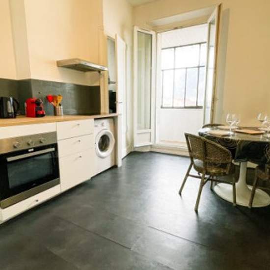 Découvrez notre appartement ensoleillé situé Cours Berriat à Grenoble. Cet appartement lumineux se compose : - d'un grand salon cosy avec canapé- lit, TV, bureau pour travailler avec une très belle vue sur les massifs environnants - d'une cuisine entièrement équipée : plaques vitrocérame et four, cafetière Nespresso (capsules non fournies), bouilloire, réfrigérateur/congélateur, lave-linge - d'un espace nuit en mezzanine avec un lit en 140 cm - d'une belle salle d'eau avec douche à l'italienne, sèche-cheveux - de toilettes séparées. L'appart...