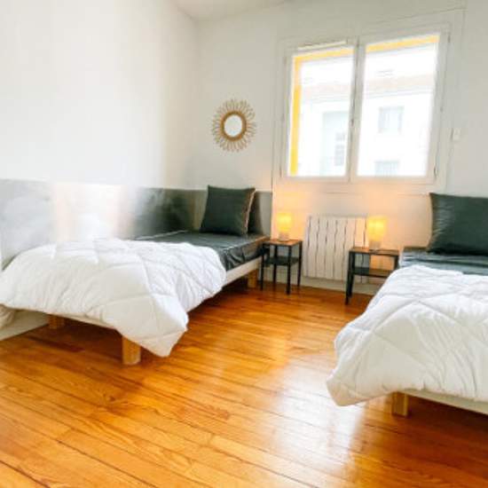Découvrez notre agréable T2 situé rue Aimé Berey à Grenoble. ** Votre logement :** Situé au 4ème étage avec ascenseur, ce T2 , tout équipé, se compose de - une grande cuisine aménagée (four, micro-ondes, machine à café etc...) - un salon avec TV/Internet ainsi qu'un canapé-lit - une chambre avec 2 lits simples - une salle d'eau et WC indépendant L'appartement dispose de 2 espaces de couchage : - 1 chambre avec 2 lits simples - 1 canapé lit 2 places dans le salon Voyagez tout confort grâce aux équipements présents dans l'appartement, tels qu'...