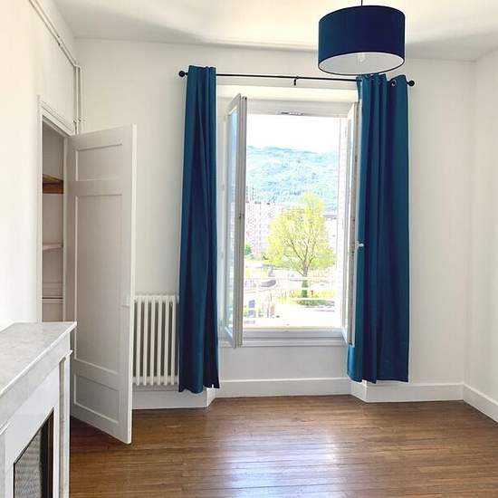 Grenoble Quartier Balzac - Libération - Au 4e et dernier étage sans ascenseur avec faibles charges - Dans un très bel immeuble de style Art Déco - Grand appartement de type F2 de 59 m² entièrement rénové - comprenant un jolie cuisine aménagée et entièrement équipée - un séjour parqueté avec alcôve et cheminée - donnant sur 2 balcons - bénéficiant d'une belle luminosité avec une vue très dégagée sur les montagnes sans aucun vis à vis - une grande chambre parquetée avec cheminée et rangements - salle de douche avec ameublement neuf - wc indépe...