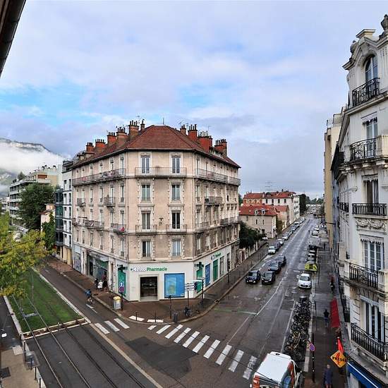 GRENOBLE, 153 cours Berriat, au 3ème étage sans ascenseur d'un immeuble sécurisé, T2 meublé de 51 m² comprenant : une entrée avec un grand dressing et placard, un séjour, cuisine séparée équipée ( lave vaisselle, four, plaques de cuisson, hotte, micro onde), une grande chambre avec balcon, salle de bain (avec machine à laver). Cave. Chauffage individuel poêle à granules, très économique. Disponible le 25/11/2025. Zone soumise à l'encadrement des loyers - Loyer de référence majoré : 772.31 € Loyer de base 745 € + provision pour charges 35 € (...