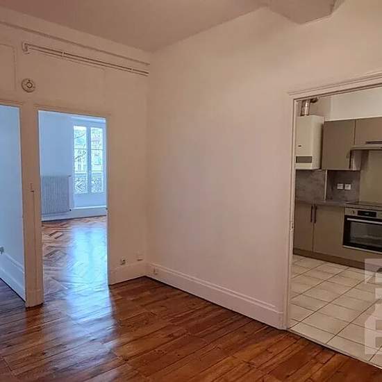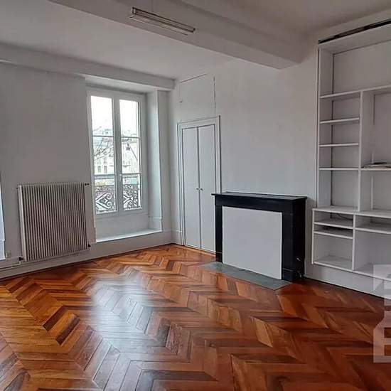 Quai Perrière, dans un immeuble du 19ème, un grand T2 entièrement rénové d'environ 65m², au 1er étage sans ascenseur. Il comprend un couloir desservant une cuisine aménagée (plaques vitrocéramiques, four, hotte, rangements) avec deux arrivées/sorties d'eau, desservant également deux grandes pièces pouvant être un séjour et une chambre ou deux chambres, une salle d'eau (douche + meuble vasque) avec WC. Double vitrage. Parquet ciré. Chauffage individuel gaz, EC/EF individuelles (chaudière gaz). Loyer 775 €+ 30 € de charges, soit 805 € CC. DISP...