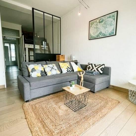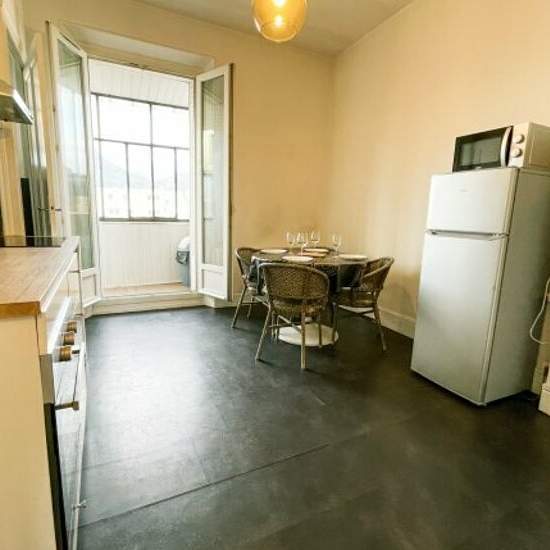 Discover our sunny flat on Cours Berriat in Grenoble. This bright flat comprises : - a large, cosy living room with sofa bed, TV and desk for working, with a beautiful view of the surrounding mountains - a fully-equipped kitchen: ceramic hob and oven, Nespresso coffee machine (capsules not supplied), kettle, fridge/freezer, washing machine - a sleeping area on the mezzanine with a 140 cm bed - an attractive bathroom with walk-in shower and hairdryer - separate toilet. The flat has two sleeping areas: - a double bed on the mezzanine in the li...