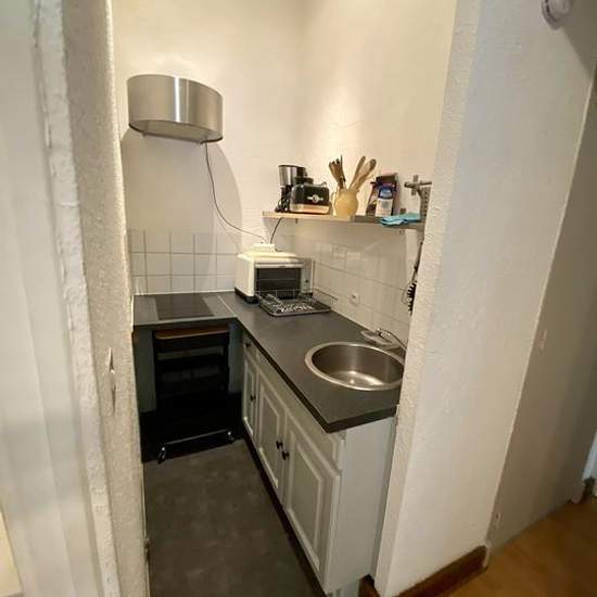 T2 meuble dans résidence située en centre ville, petit appartement de type 2, meublé, situé au 1er étage sans ascenseur, comprenant, un séjour salon avec coin cuisine équipé, une salle d'eau avec wc, une chambre avec lit 140 cm. Bail longue durée disponible.
