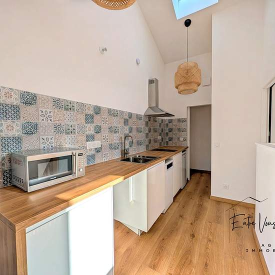 Votre agence ENTRE VOUS ET NOUS d'Auros vous propose ce logement entièrement meublé sur la commune de Grignols. Il a été entièrement rénové en 2025, avec climatisation réversible, visiophone, prises RJ45, lave-vaisselle. Il se compose d'un séjour lumineux, d'une cuisine équipée et aménagée, une chambre, d'une salle d'eau et coin rangement et d'un WC séparé. dont l'eau comprise pour une personne par an soit 50 m3 soit 30 euros/mois compris dans le loyer de 600 euros. Honoraires de 220 € TTC à la charge du locataire comprenant 132 € TTC pour l...