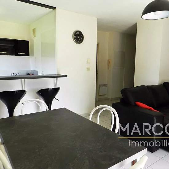 MARCON Immobilier GUERET - Creuse en Limousin Nouvelle Aquitaine. Réf.1149. A GUERET, Bel appartement F2 meublé de 49 m² au rez-de-chaussée d'une résidence récente comprenant : séjour avec cuisine équipée, chambre, salle d'eau et WC. Chauffage électrique. Terrasse et parking privatif. Libre de suite. Loyer: 530 € dont 70 € de provisions pour charges (régularisation annuelle) Caution: 460€. Honoraires à la charge du locataire : 273.02 € TTC dont 74.46€ TTC pour état des lieux MARCON Immobilier GUERET Réseau de 3 agences en Creuse: Aubusson-Gu...