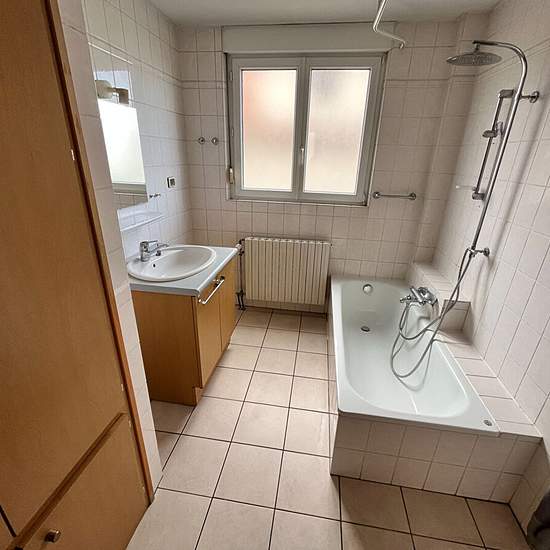 HAGUENAU, proche centre ville et gare (rue Ferme Falk), spacieux 2 pièces de 65m² situé au deuxième étage d' une petite copropriété de 5 logements. Le bien comprend une belle entrée avec placard, un séjour, une chambre, une cuisine indépendante, une salle de bains, un wc séparé et un débarra. De plus, vous disposerez d'une cave et d'un garage. Chauffage individuel au gaz. Loyer : 580 EUR par mois charges comprises dont 35 EUR par mois de provisions sur charges (régularisation annuelle) Dépôt de garantie : 545EUR Honoraires charge locataire :...