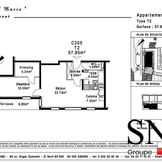 SNG LOCATION - RESIDENCE MARIE - HENIN BEAUMONT DISPONIBLE LE 20/05/2026 CONTACTEZ NOTRE AGENT COMMERCIAL WOJCIECHOWSKI ARNAUD au 06x09x40x84x72 pour visiter cet appartement T2 de 57.85m² au 2ème étage comprenant : un séjour, une cuisine, une chambre avec un dressing, une salle de bain et wc. Jouissance d'une terrasse. Vous disposez d'une place de parking privative numérotée avec ce logement. Honoraires de 538 € TTC à la charge du locataire comprenant 175,28 € TTC pour l'état des lieux. Loyer de base 440.00 €/mois. Provision sur charges 98 €...