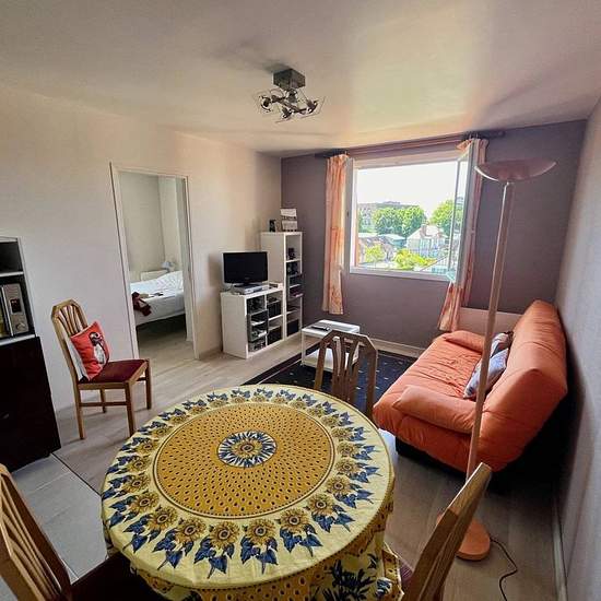 Appartement situé au 4ème étage d'une résidence proche de la gare et du centre ville, d'environ 28 m2, comprenant une entrée distribuant une salle de douche avec wc, une cuisine aménagée et équipée, une pièce de vie avec vue mer et une chambre. Place de parking. Idéal pour 4 personnes.