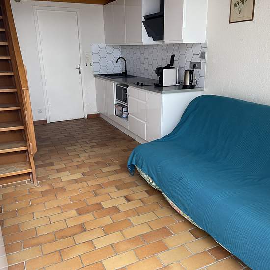HYERES - SECTEUR MONT DES OISEAUX - DANS RESIDENCE SECURISEE AVEC PISCINE- AU CALME- APPARTEMENT MEUBLE EN SOUPLEX COMPOSEE: Une entrée avec mezzanine servant de chambre, à l'étage inférieur, une pièce de vie avec son espace cuisine équipée et aménagée donnant sur la terrasse. une salle de bain avec placard et WC. Petite terrasse avec une superbe vue mer. Place de parking privative. Nombreux rangements au niveau de l'escalier. LOYER 690EUR par mois dont 40EUR de charges comprenant, - Espaces verts, piscine, eau froide - avec régularisation a...