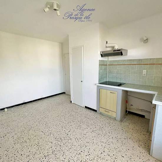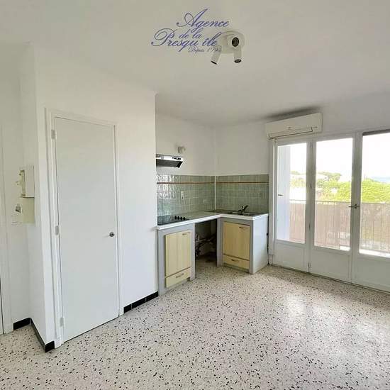 Sur la Presqu'ile de Giens ! Notre agence vous propose : Une Location annuelle. Dans une copropriété sécurisée avec portail électrique, T2 de 27m². Balcon vue mer. L'appartement se situe au 3ème étage sans ascenseur. Le logement se compose d'une pièce à vivre avec coin cuisine, une chambre, une salle d'eau avec WC et balcon. L'appartement dispose d'une place de parking privative. Le loyer s'élève à 594€ + provision sur charges de 40€. A visiter sans tarder.