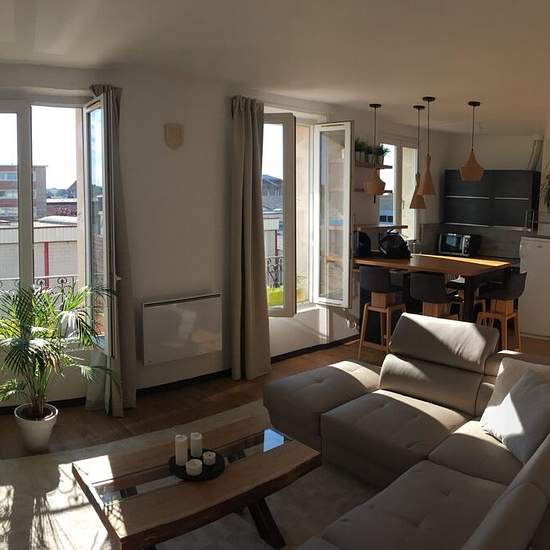 House Box vous propose en exclusivité ce superbe appartement aux prestations haut de gamme en location meublée. Dans un quartier calme, proche des commerces, au pied du bus 180 et à 7 minutes à pied de la gare de Vitry-sur-seine RER C. Au deuxième étage d'un bel immeuble ancien, venez découvrir ce F2 de 45 m² moderne et très lumineux; exposition est/ouest, entièrement refait à neuf, il se compose: d'une entrée, un grand séjour de 30 m² très lumineux donnant sur une cour au calme, une cuisine moderne entièrement aménagée et équipée, une chamb...