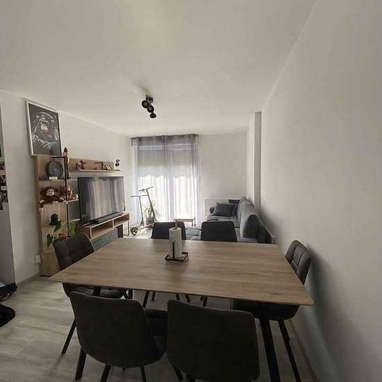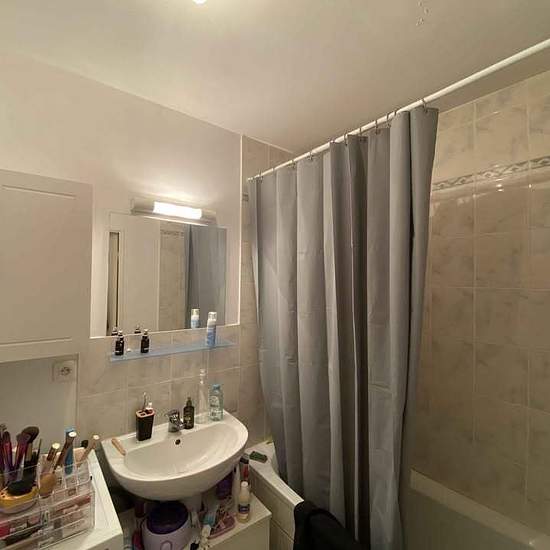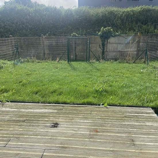 Appartement de type 2, au rez de chaussée avec terrain de 40m2 plus terrasse. Composé : entrée avec placard, séjour avec kitchenette et meuble évier, chambre avec placard, salle de bain, wc