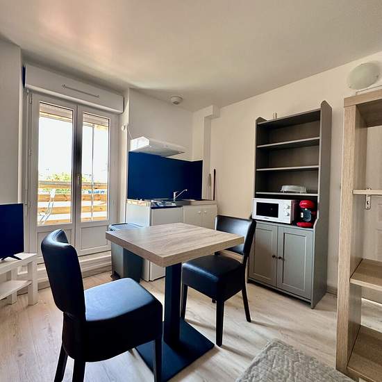 Nous ne sommes pas une agence immobilière il n'y a donc pas de frais d'agence, réservez en trois cliques votre appartement sur notre site internet, 42 logements sont à votre disposition. Daville Pro Immobilier vous propose ses logements disponibles à la nuit, à la semaine, au mois ou bien à l’année. Notre logement d’une superficie de 22 m2 situé au 1er étage peut accueillir 1 à 4 voyageurs. Il est composé de : - Une cuisinette comprenant une table et deux chaises, un réfrigérateur, un micro onde, une plaque de cuisson, une cafetière, des ust...