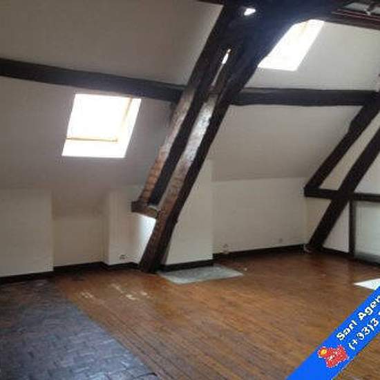 Appartement mansardé en centre ville. 1er niveau : entrée, pièce de vie, cuisine, salle d'eau wc, 2ème niveau: mezzanine offrant espace nuit. Disponible le 17/04/2026