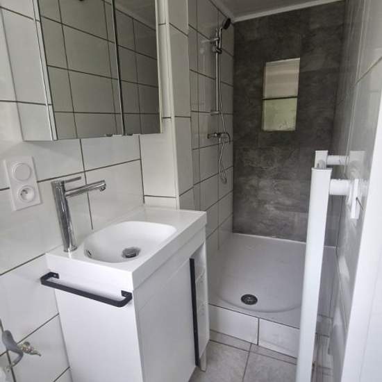Renovated apartment located on the 3rd floor of a small building with three units, comprising entrance, hallway, living room, equipped kitchen, bathroom with shower, toilet, sink. Electric heating.