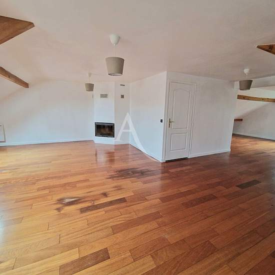 A LOUER. Dans quartier pavillonnaire, au 2ème étage d'une maison, 2 pièces de 95,21 m² au sol, 56,37 m² habitables : Double séjour avec cheminée de 30,13M2 (43M2 au sol) , une chambre de 12,43 M2 (23M2 au sol), cuisine aménagée et semi équipée, salle de bains avec WC. Dressing latéral de 3,86M2 ( 13M2 au sol). Bel appartement atypique sous combles. Cave. D Disponible le 22/12