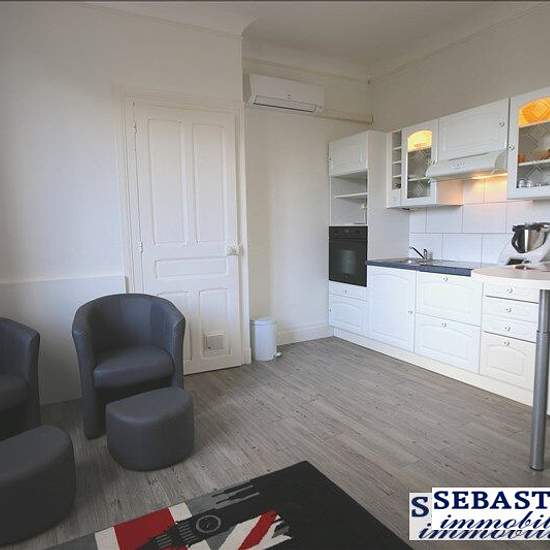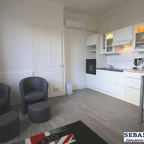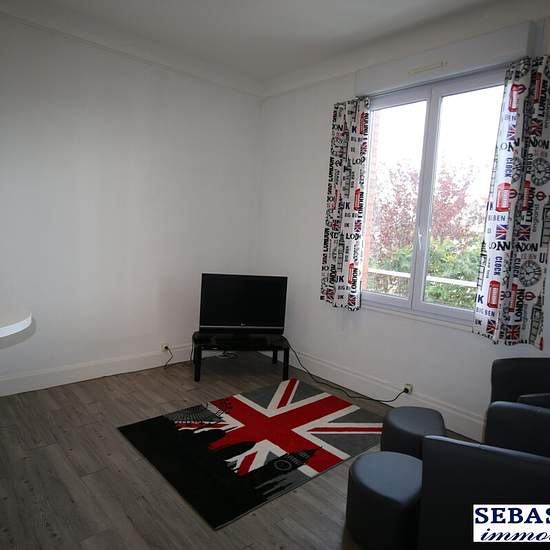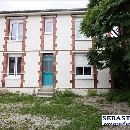 Limite de Troyes, Prox. Route de Paris, MAGNIFIQUE F2 Meublé Rénové style contemporain, de 35,10 m² (39 m² au sol) avec meubles, dans MAISON 1930, agréable séjour avec 2 fauteuils et pouf 'simili cuir', table basse, tapis, cuisine USA aménagée et équipée (four, frigo, plaques vitro...) avec bar 2 tabourets hauts, gde chambre, belle salle d'eau aménagée et équipée avec wc machine à laver ; grande chambre avec 2 lits 80x200, dressing, bureau avec chaise, 2 tables de nuit, climatisation réversible, cour, parking, LIBRE début novembre - LOYER 56...