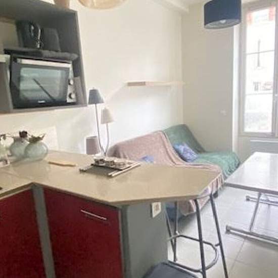 Appartement Meublé type F2 à LAGNY SUR MARNE. LAGNY SUR MARNE - rue du Château Fort En centre-ville de LAGNY SUR MARNE, proche des bords de Marne et de la Gare dans une petite copropriété au calme, appartement de type F2 meublé de 18.82 m² situé au rez-de-chaussée, comprenant: une entrée, un séjour avec cuisine ouverte aménagée et équipée, une chambre, une salle d'eau et un WC. Accès à une petite terrasse à l'arrière de l'immeuble, 1 petit débarras sur la cage d'escalier. Une cave en terre battue au sous-sol. Pas de place de stationnement...