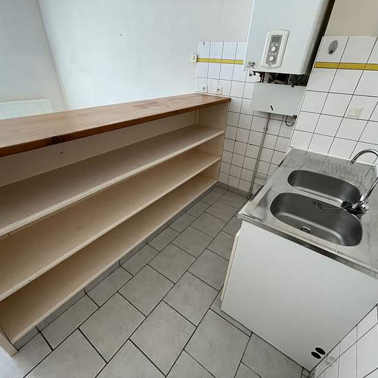 Lalevade d'ardeche, appartement t2 en rez de chaussée composé d'un séjour, un espace cuisine non aménagé, une chambre ainsi qu'une salle de bain avec wc. Cave et place de parking.