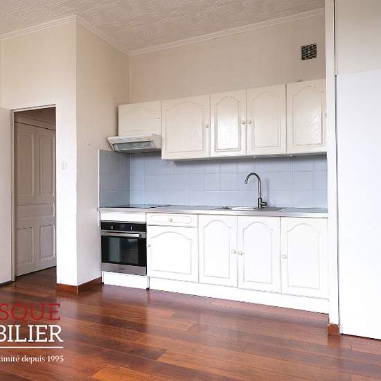 HABASQUE IMMOBILIER LANDERNEAU vous propose ce charmant appartement en plein centre ville de Landerneau. Très lumineux avec de belles hauteurs sous plafond , il se compose d'une pièce à vivre, un coin cuisine aménagée et équipée d'une plaque de cuisson, d'un four électrique et d'une hotte, d'une chambre avec dressing et d'une salle d'eau. DISPONIBLE AU 15 FEVRIER