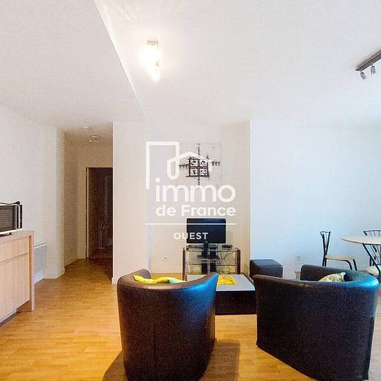 L6046-122. LAVAL, hyper centre, IMMO DE FRANCE OUEST vous propose un appartement T2 MEUBLÉ et équipé de 50.01m² offrant une grande pièce de vie ouverte sur une kitchenette, une chambre avec placard, une salle d'eau avec WC. Cave privative. Le grand atout de l'appartement : les grands placards qui offrent une solution de rangement supplémentaire. Les charges couvrent : entretien et électricité des communs, entretien extincteurs. Libre Pour toutes demandes d'informations et de visites veuillez contacter IMMO DE FRANCE OUEST au .
